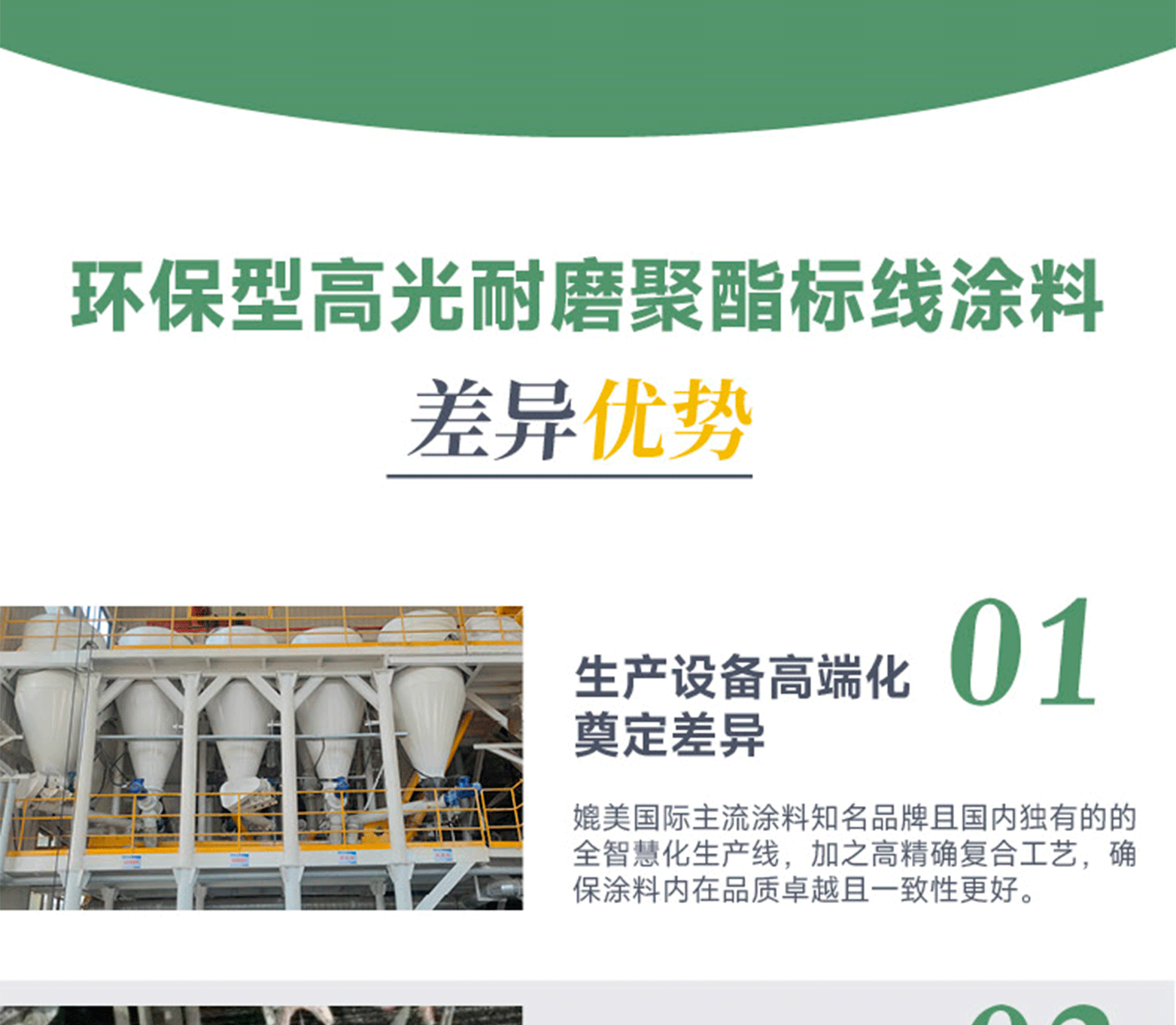 環保型高光耐磨聚酯標線涂料,由柔性聚酯樹脂、復配顏填料及多種功能性助劑,經特殊工藝制成。該涂料具有優異的黏接性、耐候性、耐磨性、結構穩定性及施工便捷性。