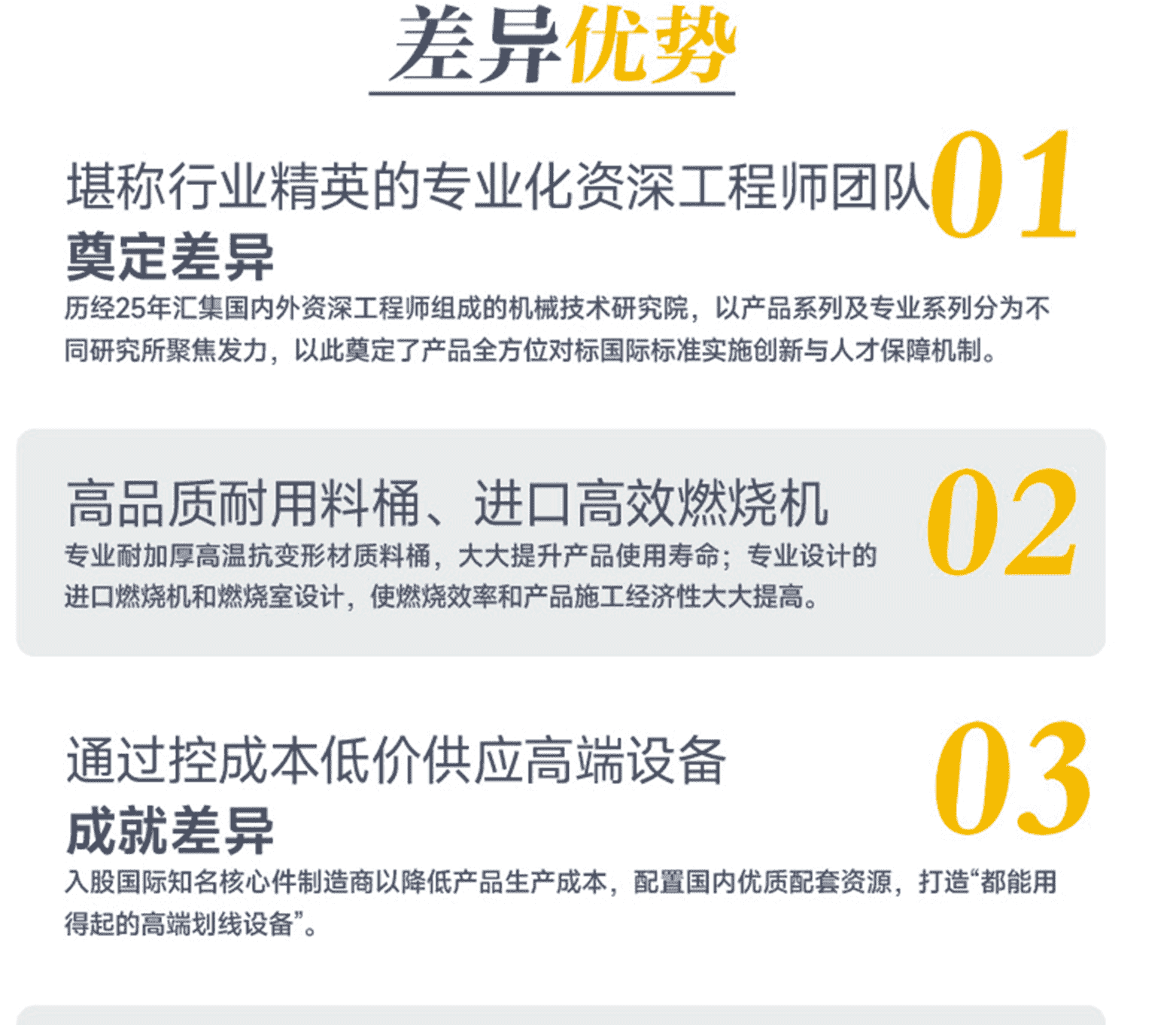 核心品質:高品質發動機和液壓元器件、進口燃燒機、加厚耐高溫抗變形材質料桶。主要特點:熔料效率高、作業性價比高
