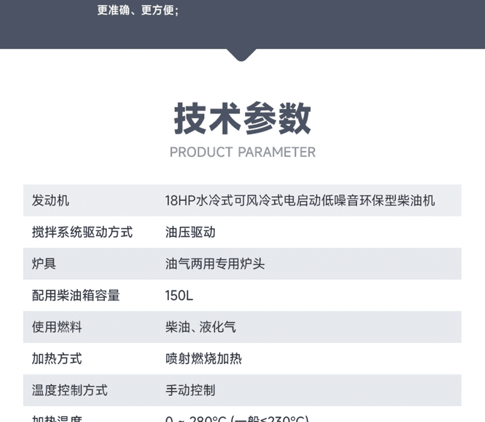 ?專家測評:采用液壓傳動以及無級變速強(qiáng)力扭矩系統(tǒng),大功率水冷式電啟動單缸直列式柴油機(jī)。獨(dú)特設(shè)計的柴油噴射加熱系統(tǒng)具有加熱速度快、效率高等特點(diǎn)。溫度表采用進(jìn)口傳感式耐熱抗震溫度表,溫度顯示更準(zhǔn)確,方便觀察溫度;