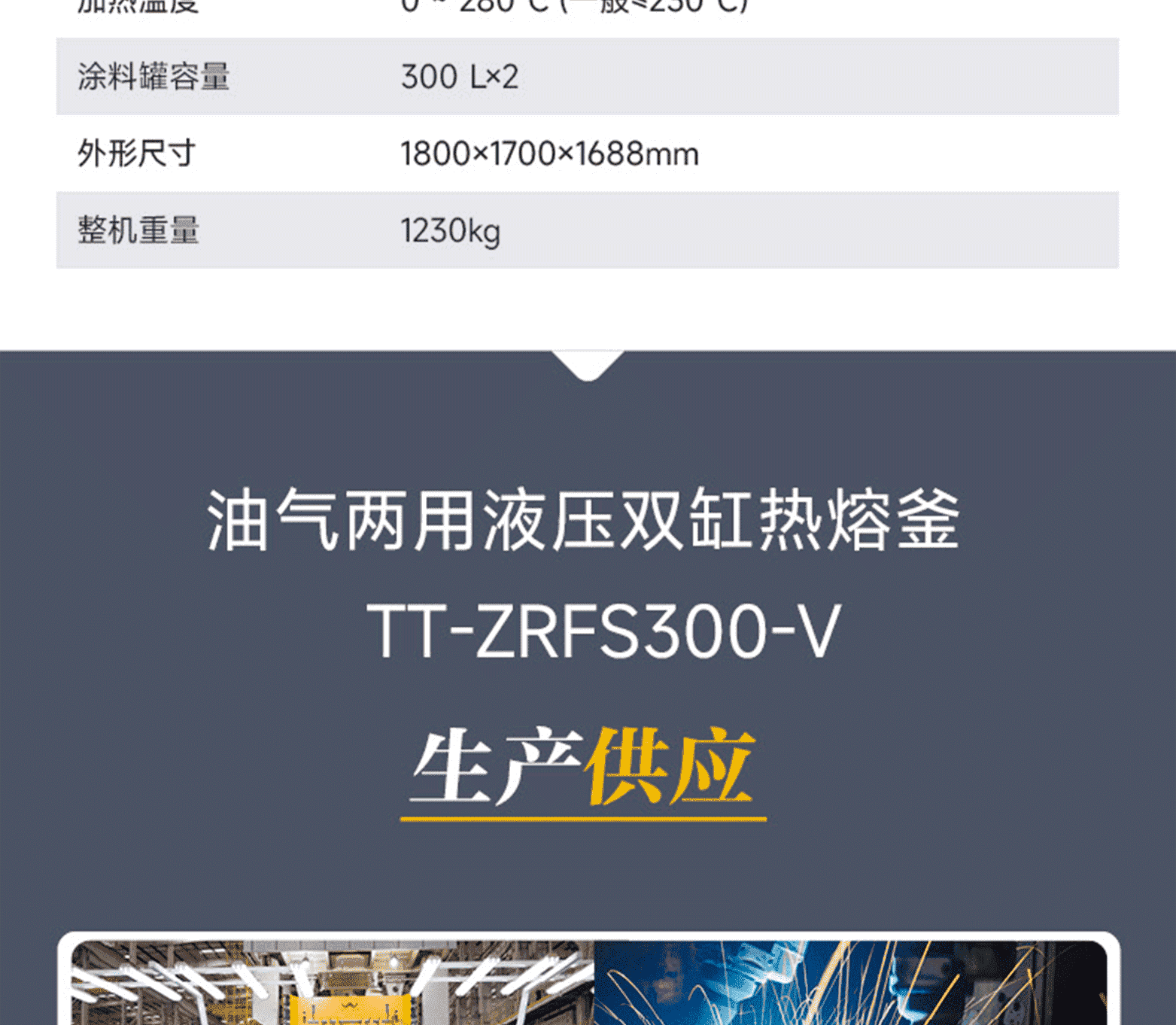 TT-ZRFS300-V油氣兩用液壓雙缸熱熔釜