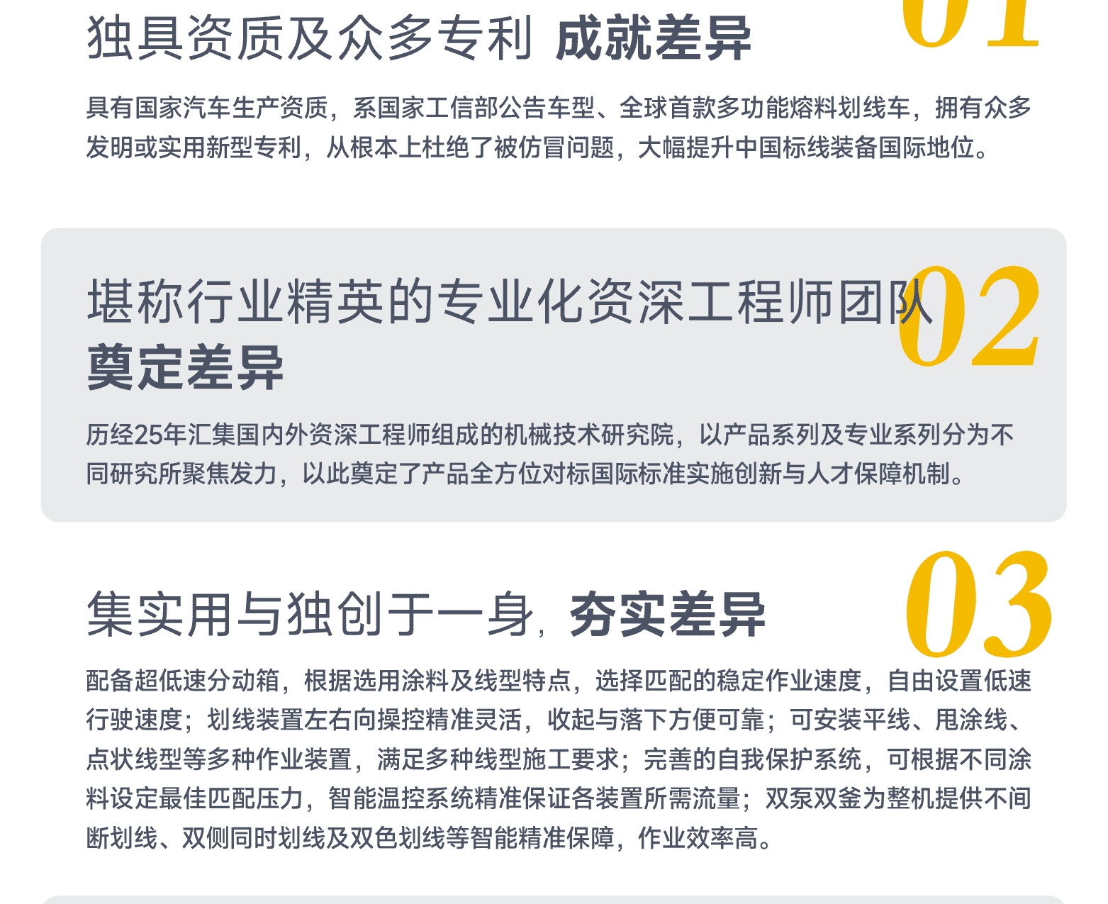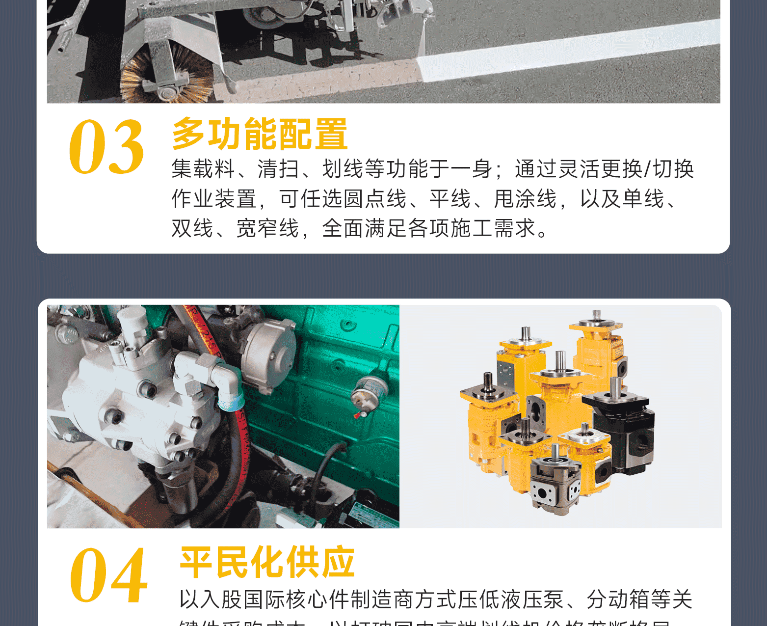 ?專家測評:專利涂料泵(實(shí)用新型 2021229326550) 、高效常溫劃線系統(tǒng)、涂料自動清洗系統(tǒng)、可視化智能操作平臺、進(jìn)口液壓元件。主要特點(diǎn):集成化程度高;液壓四泵,可雙側(cè)同時劃線;性能卓越,經(jīng)濟(jì)高效,操控精準(zhǔn)化。
