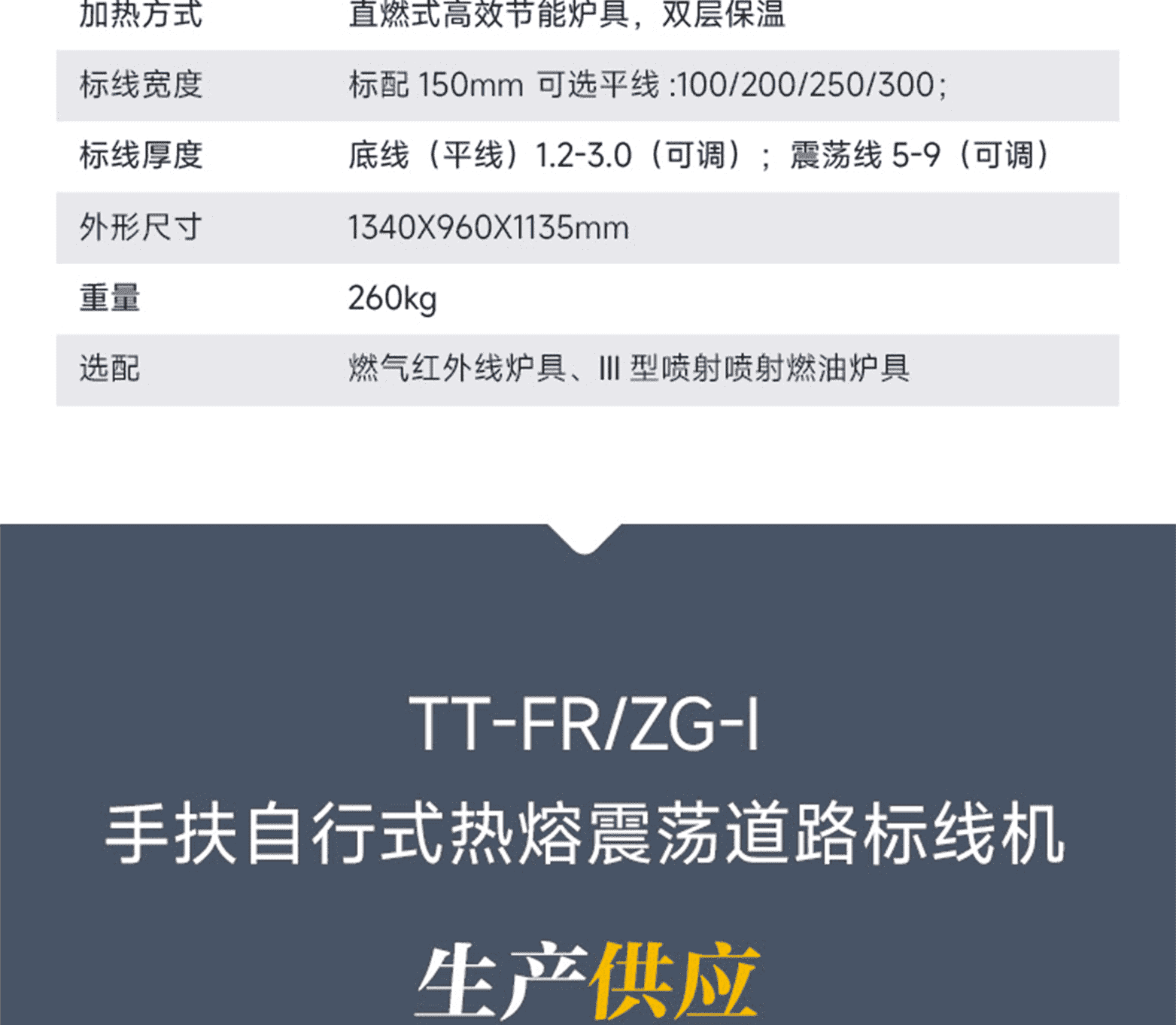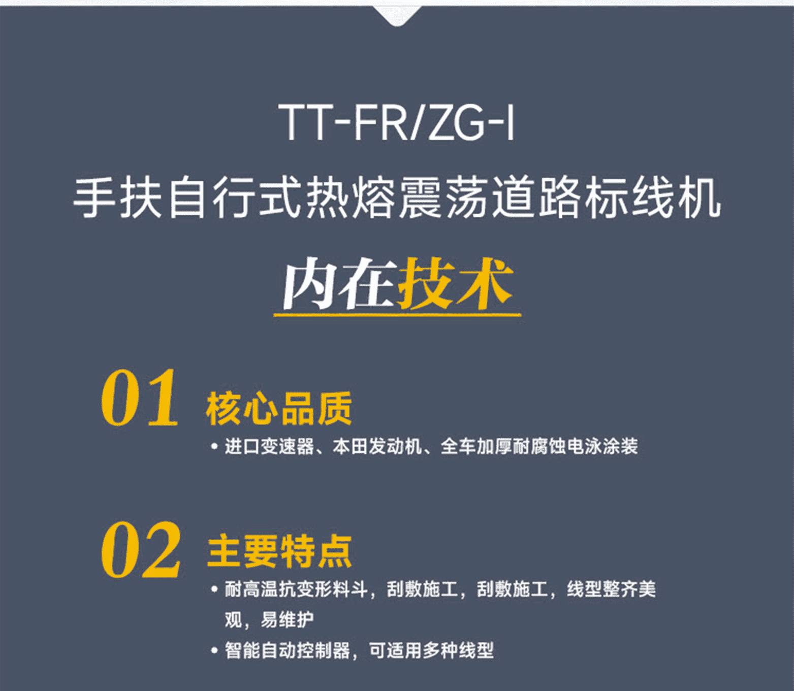 主要特點:耐高溫抗變形料斗,刮敷施工,刮敷施工,線型整齊美觀,易維護;智能自動控制器,可適用多種線型;