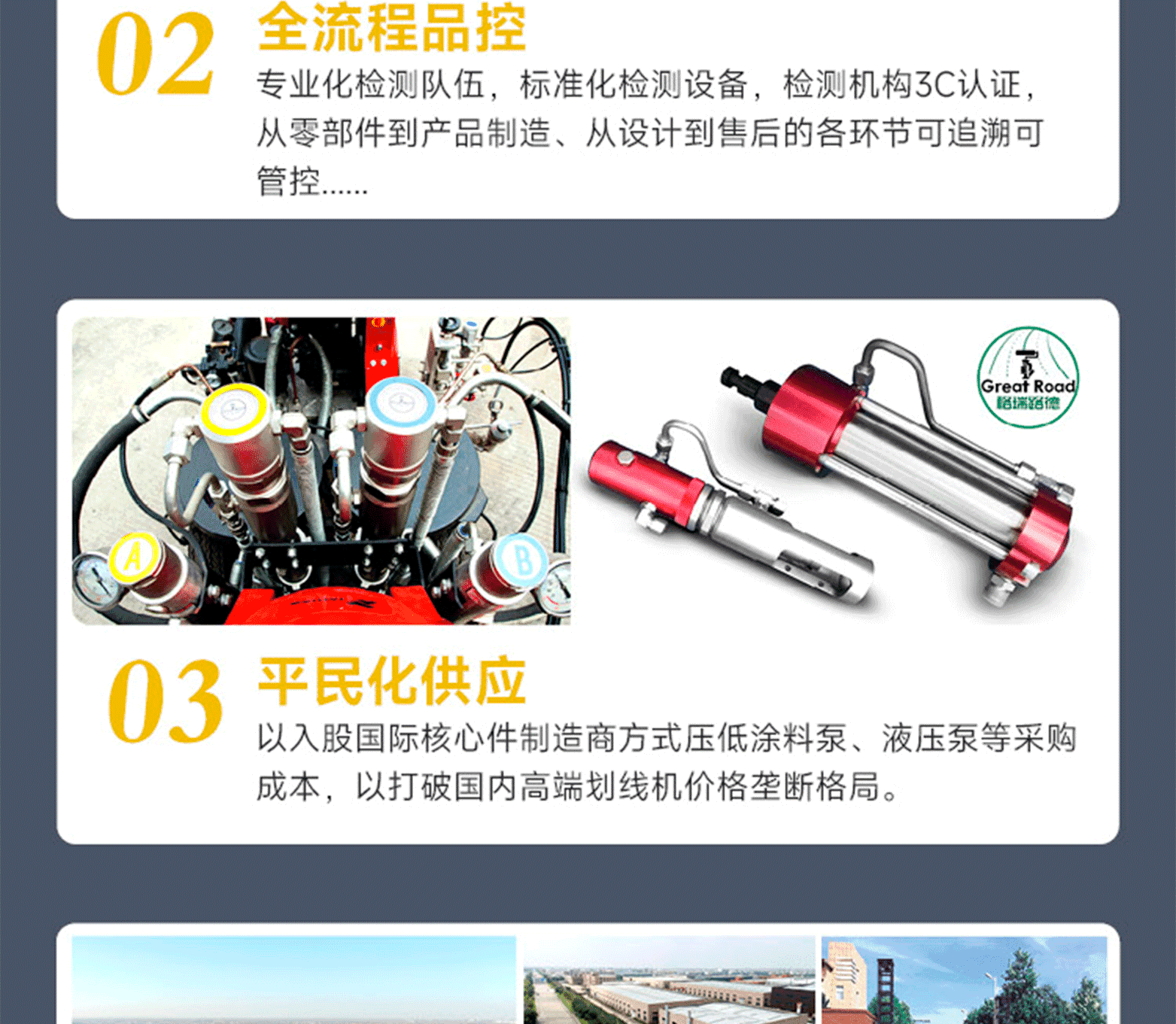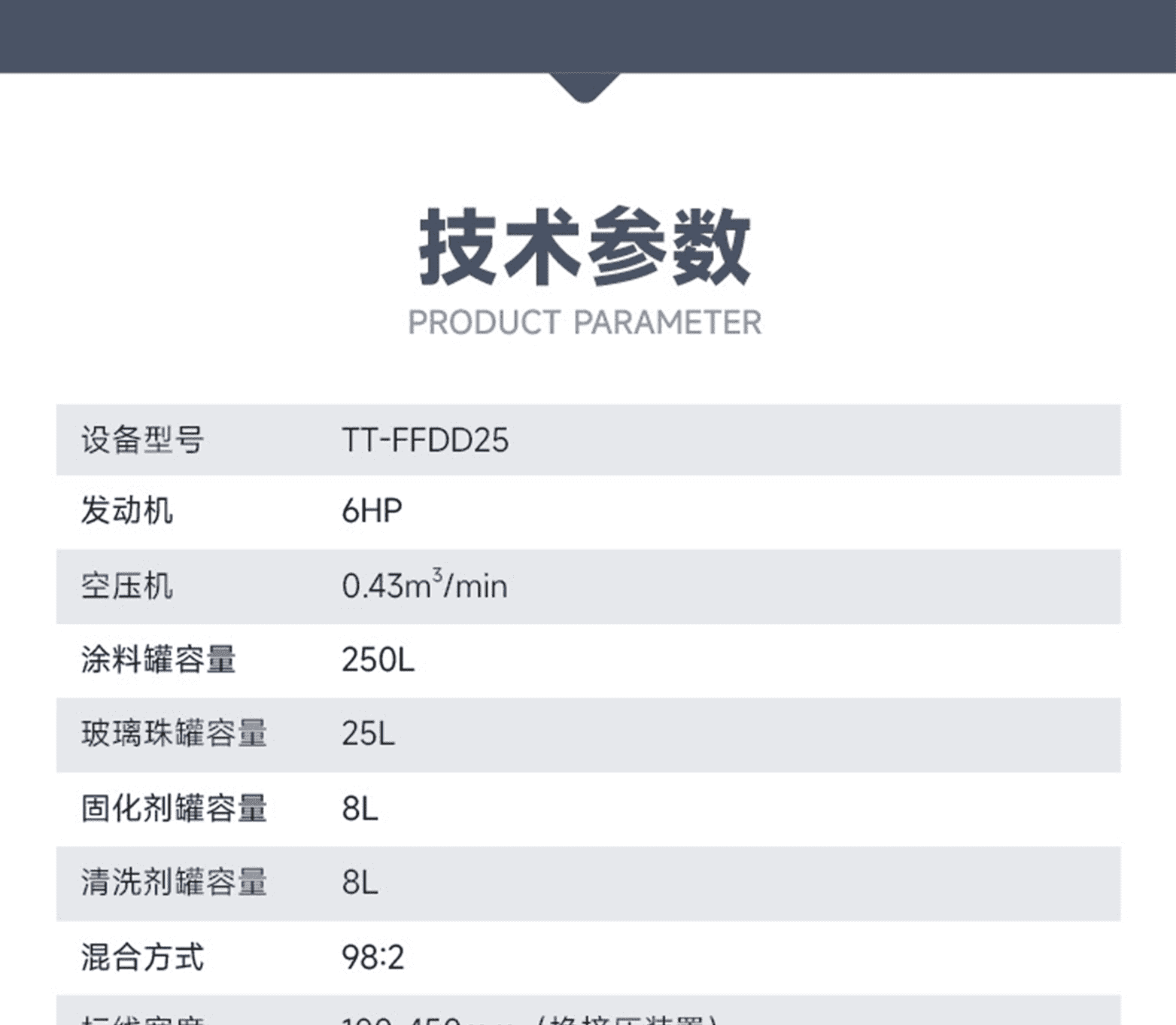核心品質(zhì):電動減速橋、進(jìn)口隔膜閥、進(jìn)口流量計、全車電泳涂裝。主要特點:大容量涂料罐、大排量空壓機、操作簡便易、容易清洗、點涂施工效率高